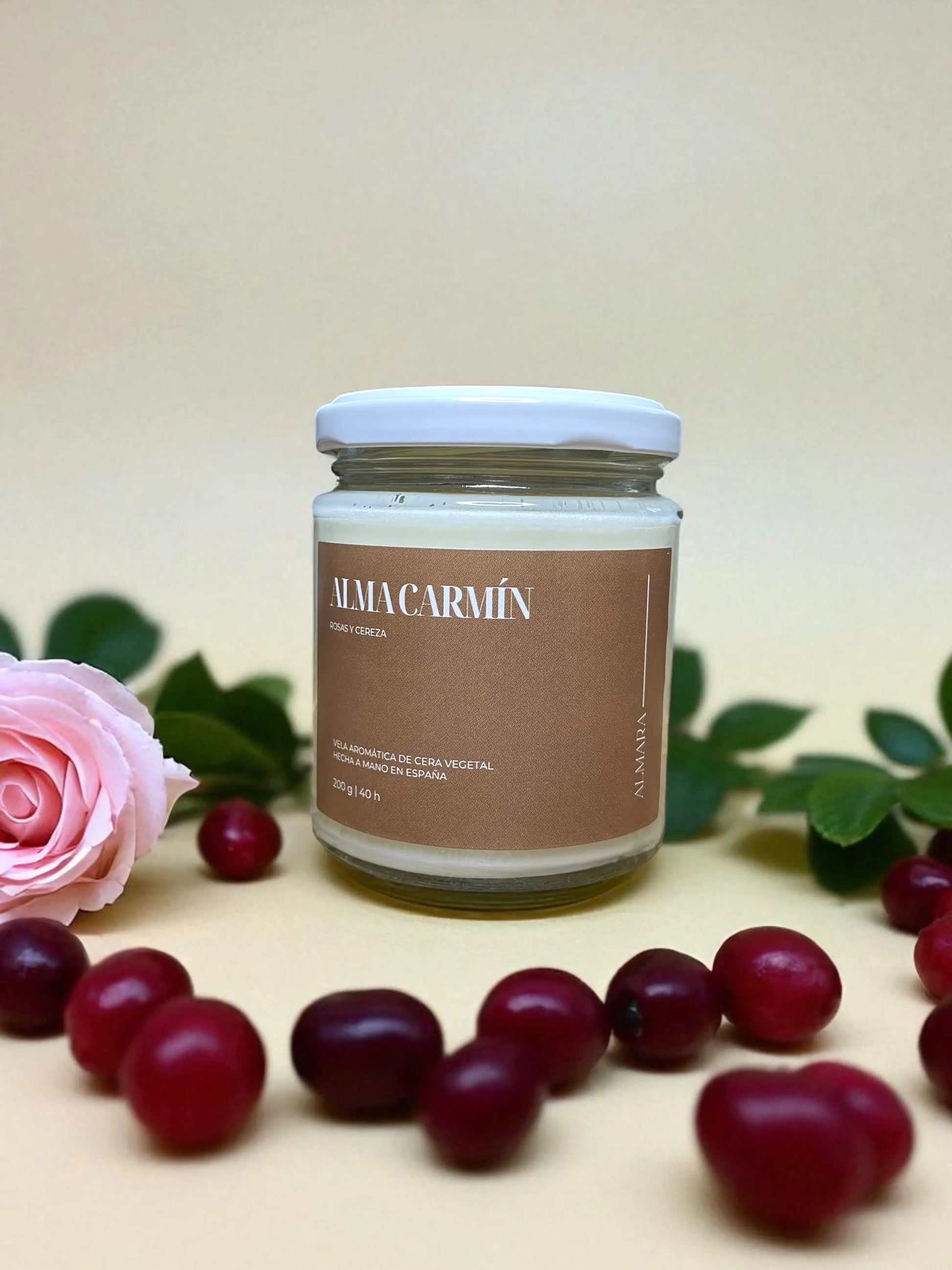 Encendiendo ALMA CARMÍN llenas el espacio de una atmósfera romántica y envolvente. La delicadeza atemporal de la rosa se fusiona con el toque dulce y jugoso de la cereza, creando un aroma elegante y sensual que invita a momentos íntimos y memorables. Esta vela es perfecta para cenas especiales, autocuidado o regalar a alguien que amas.
