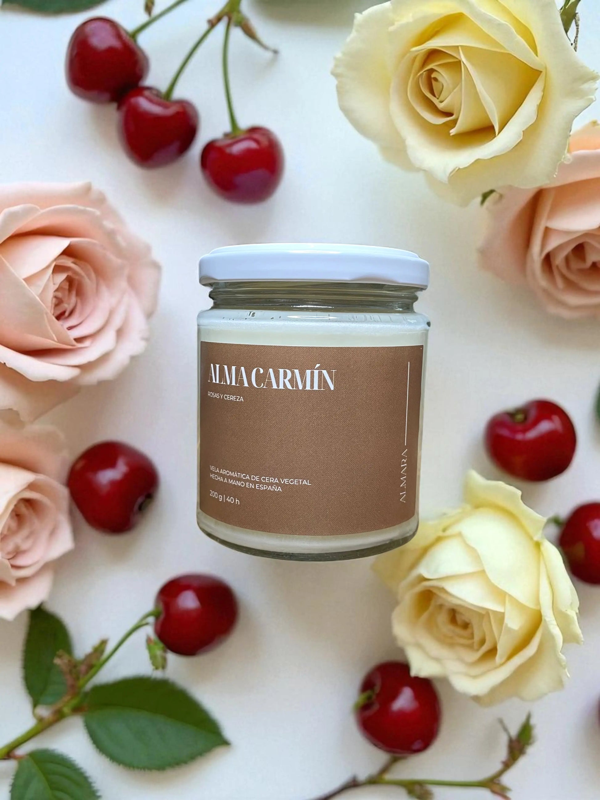 Alma Carmín : vela aromática romántica de rosas y cereza